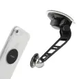 • ORBITERTM, Kit para montar en el parabrisas del vehículo (trae una ventosa para sujetarse en el vidrio y un brazo para regular la altura), contruidos con materiales de alta resistencia. • Conexión magnética potente, fácil de acoplar, girar y separar. • El montaje, al ser una esfera, permite girar en un ángulo de 360°.