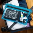 Bolsa de Viaje Nite Ize Impermeable RunOff® Azul • Sistema TRU® ZIP Waterproof: Cremallera impermeable y silenciosa. • Resistente contra el agua, el polvo y la arena. • Sumergible, testeado bajo el agua a 1m durante 30 minutos. • Ojales en los laterales para enganchar correas u accesorios. • Ventana frontal para maniobrar el smartphone con facilidad. • Permite la carga inductiva del smartphone a través de la tela. • Medidas Interior - Medium: 203 x 178mm
