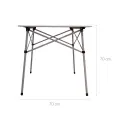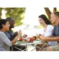 • Mesa plegable de acero y aluminio • Base de 70cm x 70cm ( se puede acomodar hasta 4 personas). • Portátil, de diseño ligero, la parte superior de aluminio encaja fácilmente en el marco de acero robusto. • Cuando esté listo para volver a casa, la parte superior de listones y el bastidor se pliegan fácilmente para guardar en la bolsa de transporte.