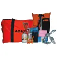 Contenidos: 2 bengalas de mano aprobadas por PNA (A) 4 chalecos Poncho c/cinta y silbato (B) 4 silbatos de 2 tonos con rabiza (C) 1 bichero o palo bichero (D) 1 pala (E) 1 linterna flotante (F) 28 m de cabo color naranja de 8 mm (G) 1 campana portátil (H) 1 convenio internacional de abordajes (I) 1 ancla con cadena (J) 1 extinguidor de 1 kg (K) 1 espejo reglamentario (L) 1 achicador de mano (M) 1 bandera Argentina (N) 1 tabla de señales de auxilio (O)