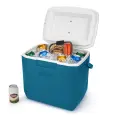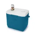 • Entran paradas las botellas de 2 litros. • Tapa HAVE-A-SEAT, con posavasos, soporta hasta 113kg y se puede usar como asiento. • Manija rebatible antideslizante. • Conserva el frío por 2 días. • Capacidad: 30Qt – 28,4lt – 38 latas. • Medidas: 45cm x 32cm x 39cm • Origen: USA