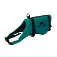 Cuenta con 3 correas ajustables, 2 que van entre las piernas y una en el cuello. En la parte superior tiene una correa empuñadura que nos permite asir fuertemente a la mascota y facilitar algunas maniobras como el desembarco y la salida del agua, además cuenta con una hebilla para colocar la cuerda de paseo. COMPOSICIÓN • Tela trucker resinada. • Hilado de poliéster. • Columna de agua 500ml. • Hebillas de resina acetal. • Cinta de polipropileno. • Espuma de polietileno cell-aire con estructura de celda cerrada. Talles: S, M y L