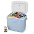 • Entran paradas las botellas de 2 litros. • Tapa HAVE-A-SEAT, con posavasos, soporta hasta 113kg y se puede usar como asiento. • Manija rebatible antideslizante. • Conserva el frío por 2 días. • Capacidad: 30Qt – 28,4lt – 38 latas. • Medidas: 45cm x 32cm x 39cm • Origen: USA