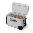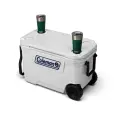 • Capacidad: 62QT (101 Latas) • Conserva el frío por 5 días. • Revestimiento anti-manchas y olor. • Tapa con 4 posa-vasos moldeados con drenaje (apto para vasos Brew). • Ruedas de 6” de alta resistencia. • Manijas laterales y una gran manija de arrastre. • Tapa Have-A-Seat TM resiste hasta 113kg y se puede usar como asiento. • Regla incorporada en la tapa. • Tapón de desagote. • Medidas: 71,1 x 39,6 x 45,7cm • Origen: USA