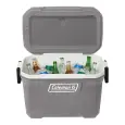 • Capacidad: 52QT (80 Latas) • Conserva el frío por 3 días. • Revestimiento anti-manchas y olor. • Tapón de desagote. • Manija reforzada. • Bisagras integradas a la tapa. • Tapa con 4 posa-vasos (de hasta 1LT), apto para vasos Brew. • Medidas: 65 x 42 X 37,5cm • Origen: USA