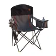 • El refrigerador integrado tiene capacidad para 4 latas. • Portavasos de malla. • Asiento y respaldo completamente acolchados. • Bolsillos laterales. • Estructura de acero resistente. • Alturas de brazo ajustables. • Soporta hasta 136 Kg. • Bolsa de transporte incluida.
