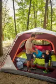 • Medidas: 304 x 274 x 188cm • Sistema Weather TecTM: con esquinas soldadas y costuras invertidas y selladas para evitar la filtración de agua (soporta vientos de hasta 56 kph) . • Sistema Quick PitchTM: Armado de la carpa en promedio de 1 minuto, gracias a los postes telescópicos pre-instalados • 2 puertas anchas que facilitan el ingreso de colchones inflables, bolsas de dormir y otros equipos dentro y fuera de la carpa. • Cubretecho amplio: Brinda extra protección contra la intemperie y mejora el flujo de aire. • E-PORT: Acceso para cable eléctrico.