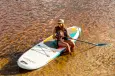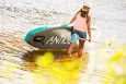 • Largo: 320 cm • Ancho: 81.28 cm • Alto: 15.24 cm • Peso: 9.48 kg • Capacidad Máx: 113.4 kg • Plataforma antideslizante • Agarradera embutida en el centro de la tabla. • Cuerda bungee. • Quilla desmontable de 10”. • Tapón de desagote. • Incluye bolsa de transporte,inflador, correa y remo.