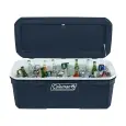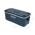 • Capacidad: 150QT (223 Latas) • Conserva el frío por 6 días. • Revestimiento anti-manchas y olor. • Tapón de desagote. • Manija reforzada. • Bisagras: Plásticas con tope. • Tapa con 4 posa-vasos (de hasta 1LT), apto para vasos Brew. • Regla incorporada en la tapa. • Medidas: 114,5 x 51,8 x 47cm • Origen: USA