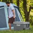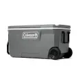 • Capacidad: 100QT (160 Latas) • Conserva el frío por 5 días. • Revestimiento anti-manchas y olor. • Tapa con 4 posa-vasos moldeados con drenaje (apto para vasos Brew). • Ruedas de 6” de alta resistencia. • Manijas laterales y una manija de arrastre. • Tapa Have-A-Seat™ resiste hasta 113kg y se puede usar como asiento. • Regla incorporada en la tapa. • Tapón de desagote. • Medidas: 95,2 x 46,9 x 45,7cm • Origen: USA