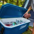 • Capacidad: 100QT (160 Latas) • Conserva el frío por 5 días. • Revestimiento anti-manchas y olor. • Tapa con 4 posa-vasos moldeados con drenaje (apto para vasos Brew). • Ruedas de 6” de alta resistencia. • Manijas laterales y una gran manija de arrastre. • Tapa Have-A-SeatTM resiste hasta 113kg y se puede usar como asiento. • Regla incorporada en la tapa. • Tapón de desagote. • Medidas: 95,2 x 46,9 x 45,7cm • Origen: USA