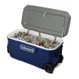 • Capacidad: 100QT (160 Latas) • Conserva el frío por 5 días. • Revestimiento anti-manchas y olor. • Tapa con 4 posa-vasos moldeados con drenaje (apto para vasos Brew). • Ruedas de 6” de alta resistencia. • Manijas laterales y una manija de arrastre. • Tapa Have-A-Seat™ resiste hasta 113kg y se puede usar como asiento. • Regla incorporada en la tapa. • Tapón de desagote. • Medidas: 95,2 x 46,9 x 45,7cm • Origen: USA