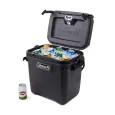 • Medidas: 33,5 x 49,5 x 44,9cm • Capacidad: 21 Latas + 6.8kg de Hielo • Conservación prolongado de frío: La tapa y el cuerpo completamente aislados. • Sistema TempLock™ FX: mantienen las bebidas frías; La junta a prueba de fugas evita que se escape el aire frío. • Tapa con destapador de botella y regla en la parte superior. • Las manijas de cordón grueso, reflectantes y antideslizantes facilitan el transporte. • Bisagras de Acero inoxidable. • Cierre rápido de presión. • Pared interior con tratamiento anti-microbiano: Resistente a las manchas, olor y moho.