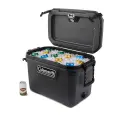 • Medidas: 67,3 x 38,8 x 45,4cm • Capacidad: 39 Latas + 13.5kg de Hielo • Conservación prolongado de frío: La tapa y el cuerpo completamente aislados. • Sistema TempLock™ FX: mantienen las bebidas frías; La junta a prueba de fugas evita que se escape el aire frío. • Tapa con destapador de botella y regla en la parte superior. • Las manijas de cordón grueso, reflectantes y antideslizantes facilitan el transporte. • Bisagras de Acero inoxidable. • Cierre rápido de presión. • Pared interior con tratamiento anti-microbiano: Resistente a las manchas, olor y moho. • Con tapón de desagote.