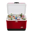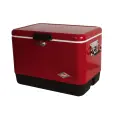 • Conservadora de acero inoxidable. • Cerrojo de acero inoxidable para sellar en forma segura. • Manijas con recubrimiento de goma. • Resistente a la corrosión. • Tapón de drenaje con leve inclinación para mejor desagote. • Bisagras y tornillos de protección contra herrumbres y roturas. • Fácil de limpiar. • Capacidad para 85 latas. • Medidas: 61 x 41 x 37cm • Origen: USA