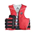 Amplitud para el movimiento de los brazos, una espalda enteriza que brinda flotabilidad extra y protección. Viene con 4 tiras reforzadas que ajustan el chaleco con hebillas de muy buena calidad que lo hace muy resistente a los golpes y caídas. Un modelo ideal para la práctica de deportes acuáticos como ski, moto de agua, etc. Aprobado por PNA como DAF. COMPOSICIÓN • Tela trucker resinada. • Hilado de poliéster. • Peso terminado: 255gr/ml. • Columna de agua 500ml. • Hebillas de resina acetal. • Cinta de polipropileno. • Espuma de polietileno cell-aire con estructura de celda cerrada.