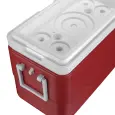• Capacidad: 28QT (36 Latas) • Conserva el frío por 3 días. • Tapa desmontable, sin bisagras. • Ganchos en los costados. • Medidas: 49 x 27 x 35cm • Made in Brasil